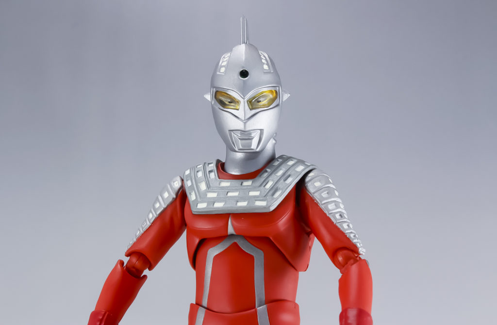 初期ロットでは目の黒い点の部分がズレている個体(本レビューは改善された再販版を使用)が出回っていたこともあったこのウルトラセブンですが、造形はさながら劇中のスーツのようで非常によくできていると思います。