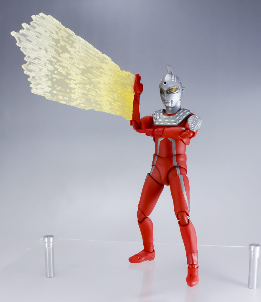 体と手足の色味を変えることでスーツの質感の違いを表現し、さらにウルトラセブンの必殺技であるワイドショット、エメリウム光線を再現するためのエフェクトが付属しています。