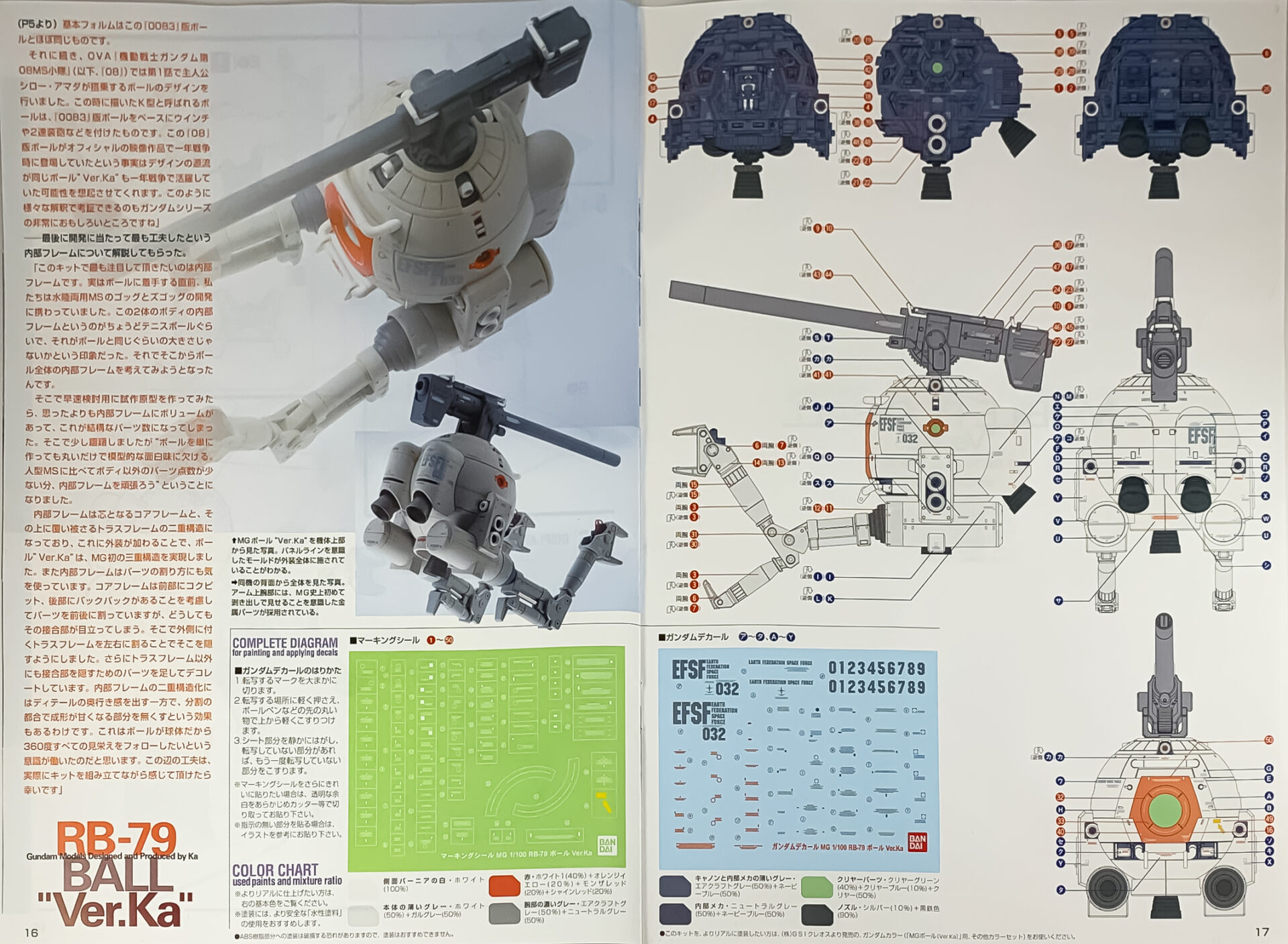 MG(マスターグレードシリーズ)や、HGUC(ハイグレードユニバーサルセンチュリーシリーズ)等、プラスチックモデルキットのコンセプトデザインを手がけるカトキハジメ氏が、「機動戦士ガンダム」に登場したメカ「ボール」を「Ver.Ka」としてリファイン、全面監修した“デザイナーズMG”第3弾。■コクピットを含むコアフレームと、それを覆うトラスフレームからなる、まったく新しいキット構成。■金属パーツを一部に使用した、実感にあふれ自在に動かせる大型アームを再現。■コクピットハッチや機体上部180mmキャノン砲は設定通りに可動。■ボール(Ver.Ka)用にカトキハジメ氏によって作られた細密なマーキングシール、及びガンダムデカールが付属。■専用ディスプレイスタンド、メカニッククルーフィギュア2体をセット。■ボール(Ver.Ka) の設定画稿などを観察した解説書が付属。