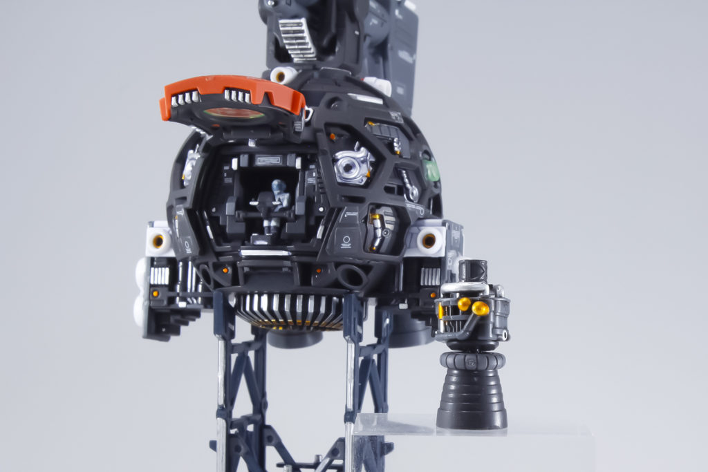コクピットハッチと側面には薄いグリーンのクリアパーツが使用されています。