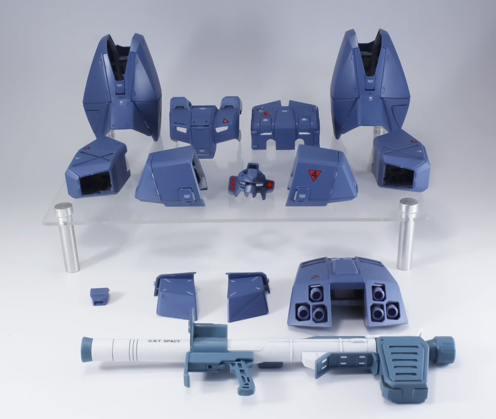 チョバム・アーマー一式、ブレードアンテナ (破損状態)、ビーム・サーベルの刃×2、ビーム・ライフル×1、シールド、ハイパー・バズーカ×1、アル&バーニィのフィギュア、スタンド用接続パーツ、交換用左右指パーツ×3