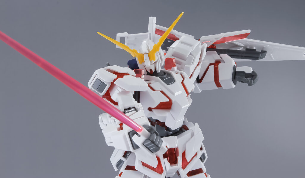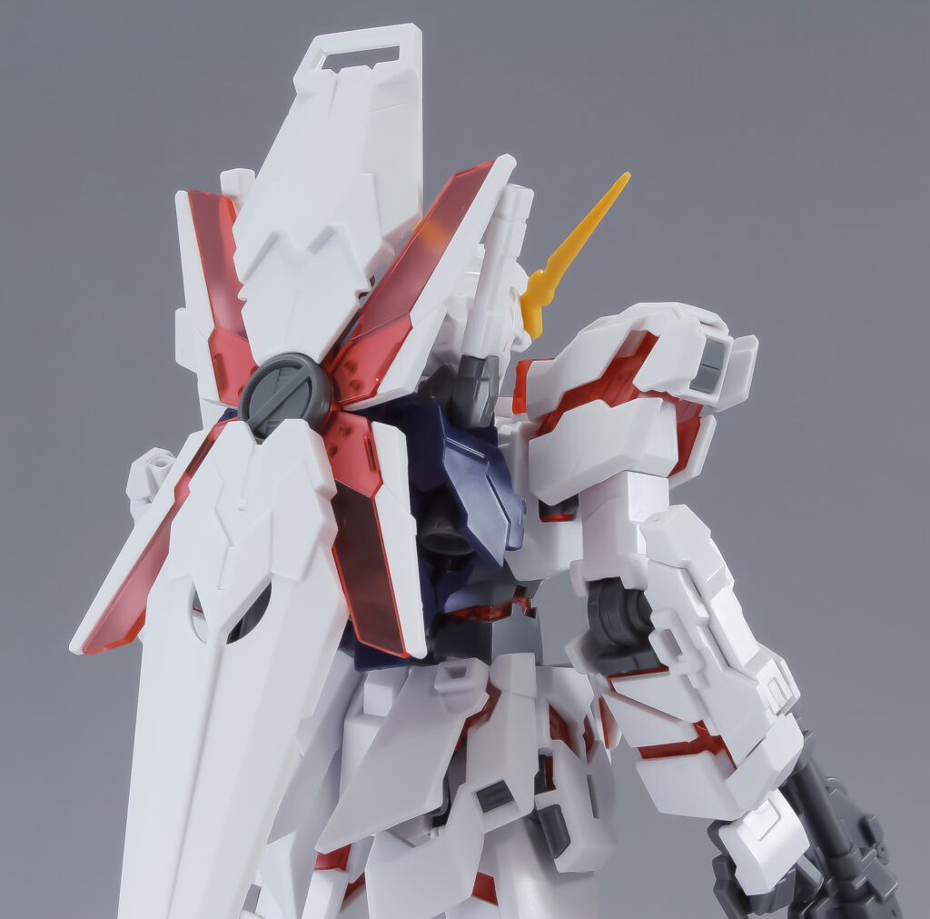 ユニコーンモードへの変身ギミックがオミットされているので、装甲は開いた状態で固定となっています。