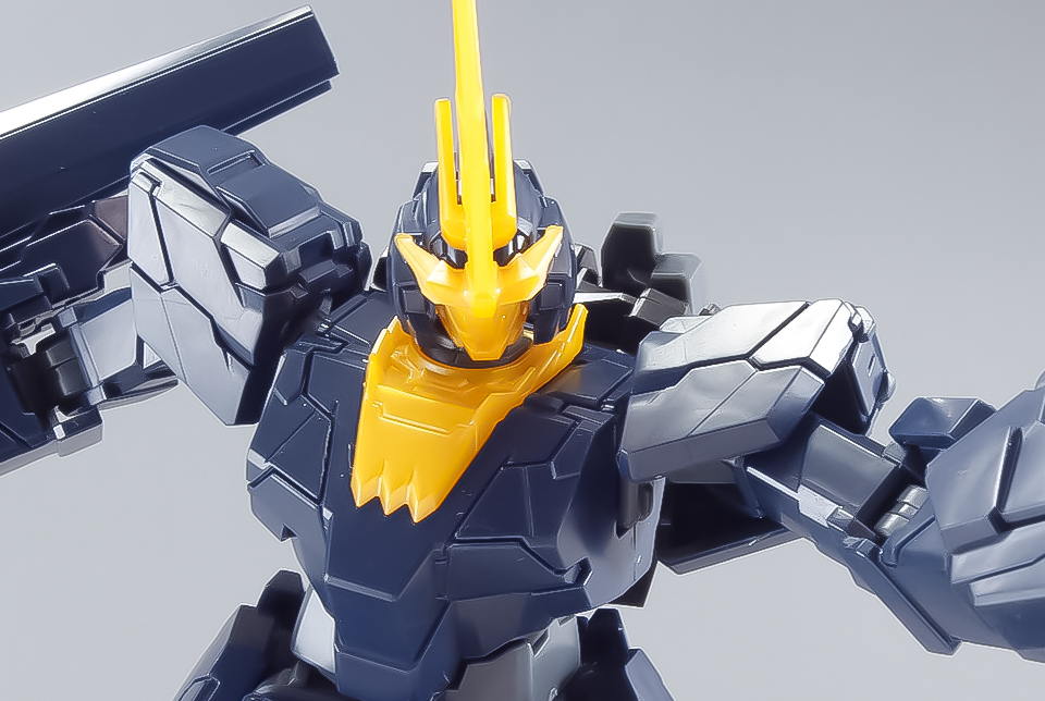 全身のサイコフレームはイエロー成型で、クリアピンクだったユニコーンガンダム1号機のように透けません。