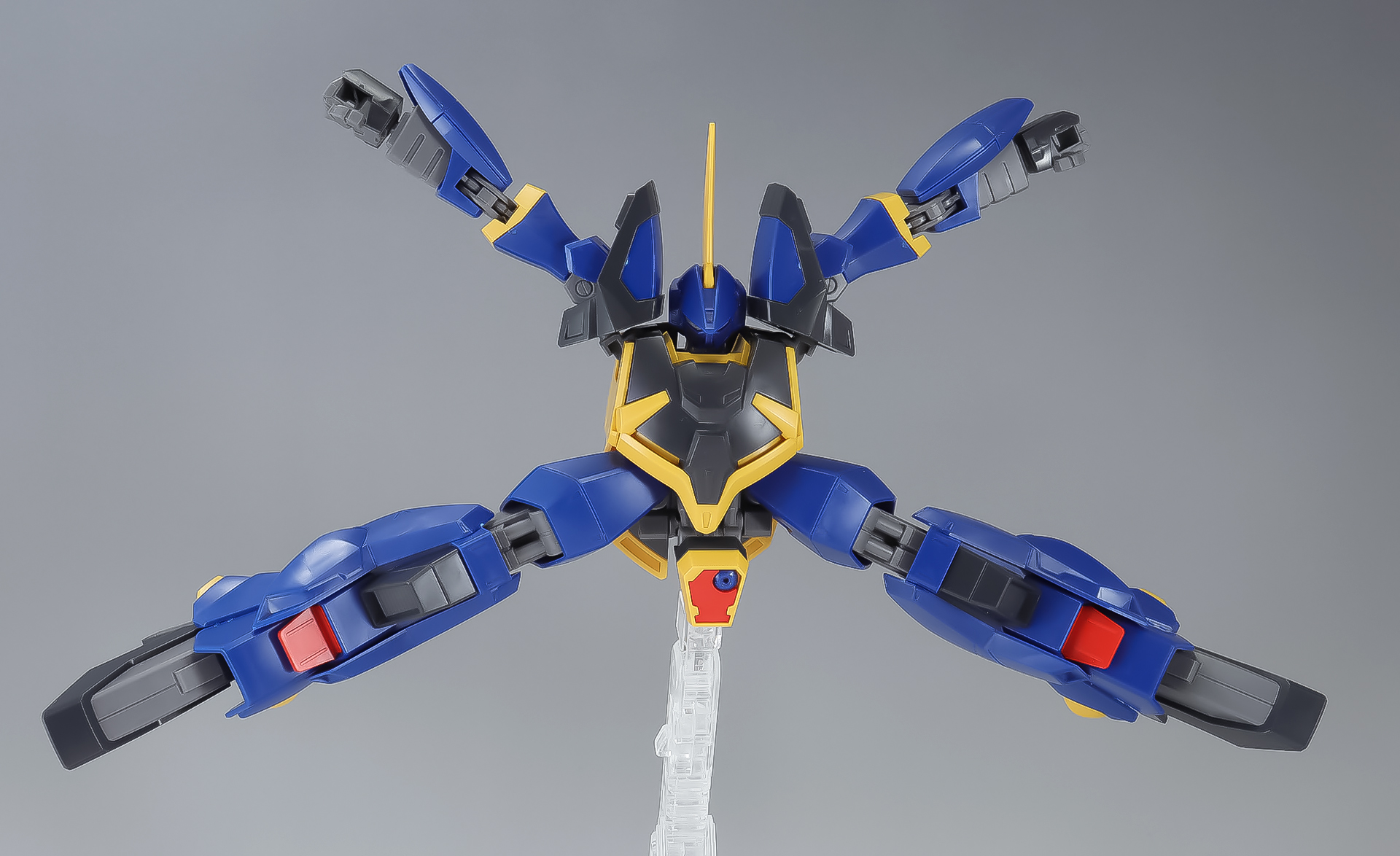 ■モノアイのクリアパーツや、胸と腰の黄色ラインなど細部まで機体のカラーリングが再現されている。