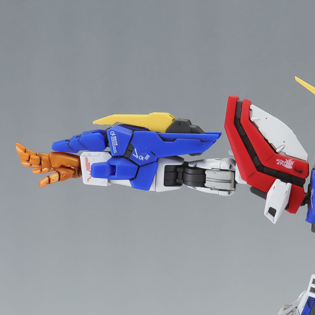 腕組みに関しては他のキットで胸部が沈んだりと様々な工夫が凝らされていましたが、今回は脇の可動域が確保されるのでポージングの幅も広がっています。