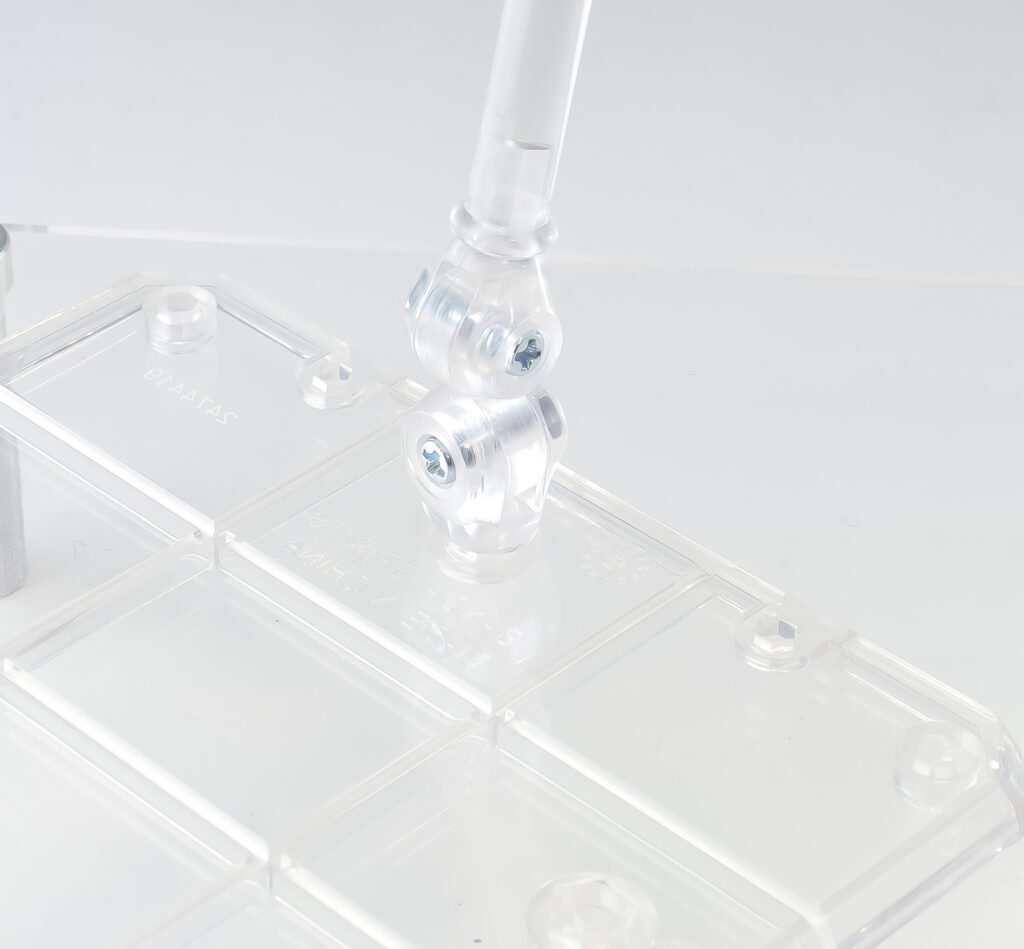 クリアパーツを使用している魂STAGEは、使い続けていると接続部が割れて支柱のピンが抜けやすくなることがあります。力を入れすぎないよう関節部の取り扱いには注意しておきましょう。魂STAGEは過去モデルから使ってきましたが経験上ここの破損率が一番高いと思います。