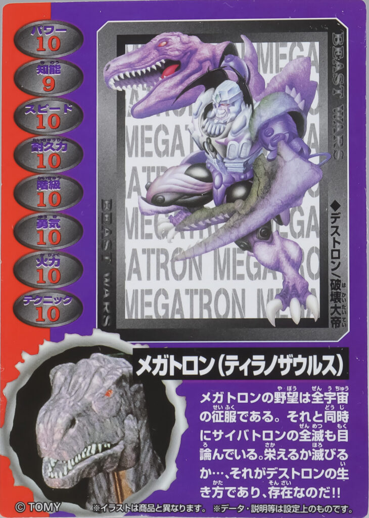付属カードのうち1枚はメガトロンで、ステータスも当時の玩具に記載されていた内容と同じとなっています。