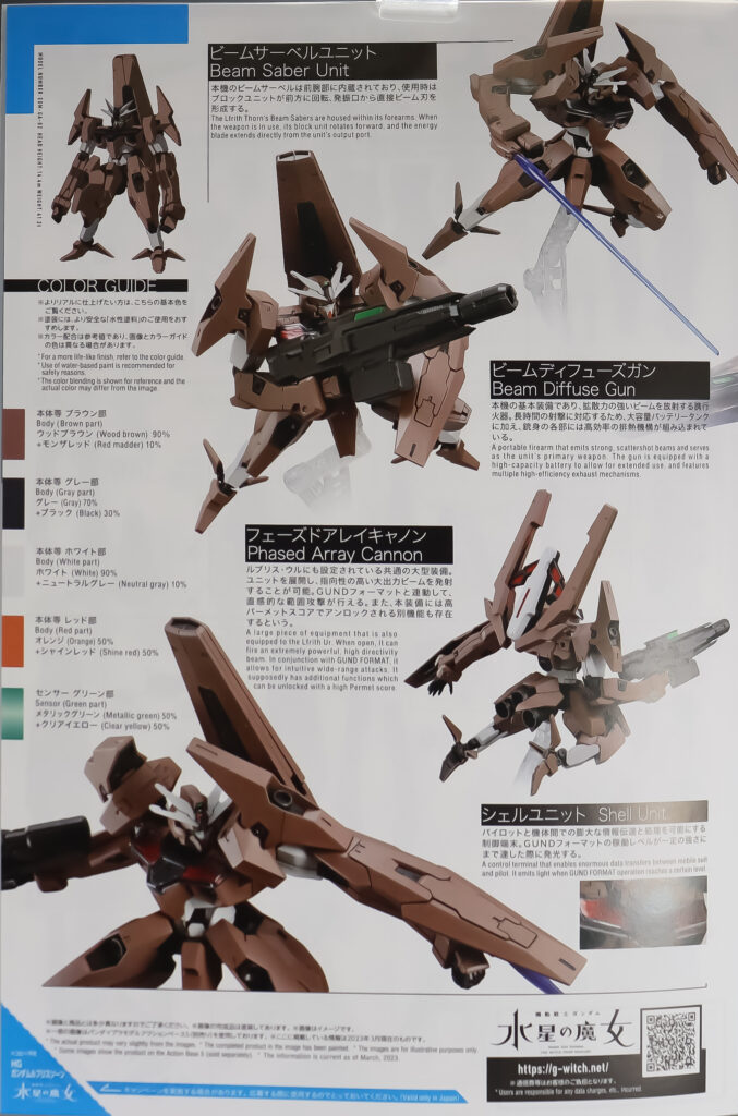 地球で活動している反スペーシアン組織「フォルドの夜明け」が所有するモビルスーツの一つ。ガンダムルブリスの量産試作モデルをベースにしていますが、大幅な改修がされているため面影はほとんどありません。